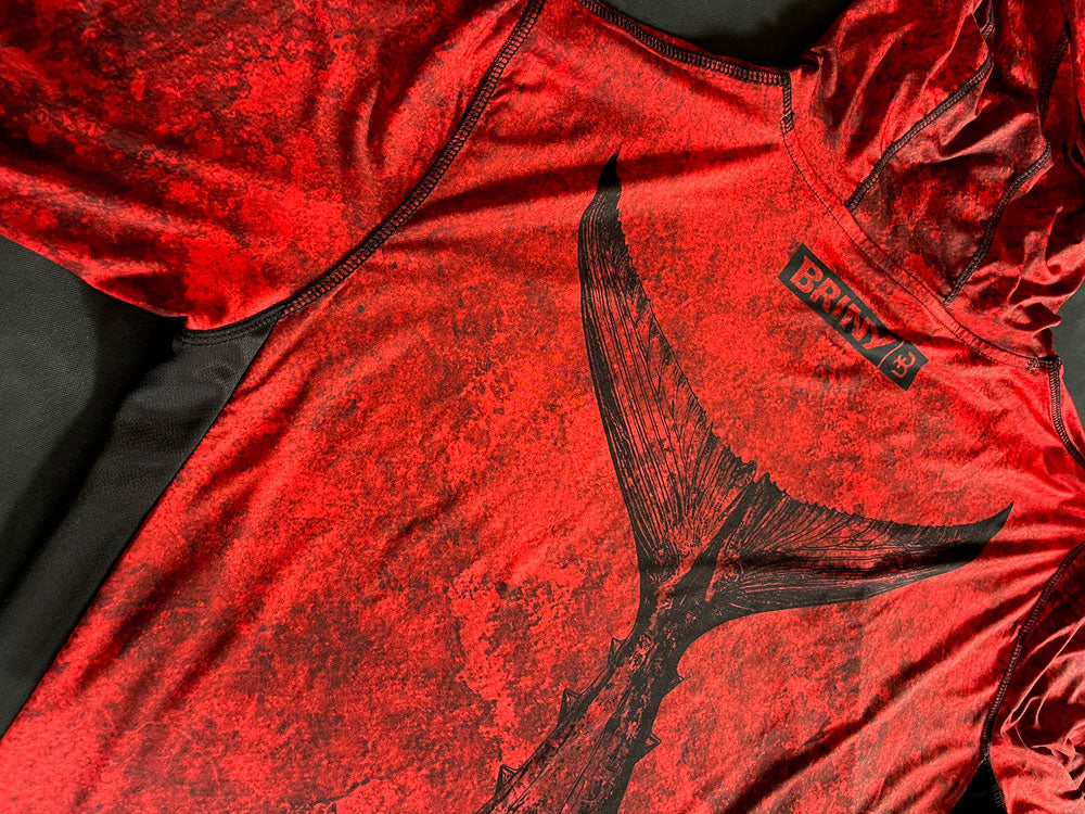 Tunablood on the shirt, lets embrace it. This stain-resistant shirt design is inspired by fish blood stains. Let the blood splashes of your prey blend in and wear them with pride!