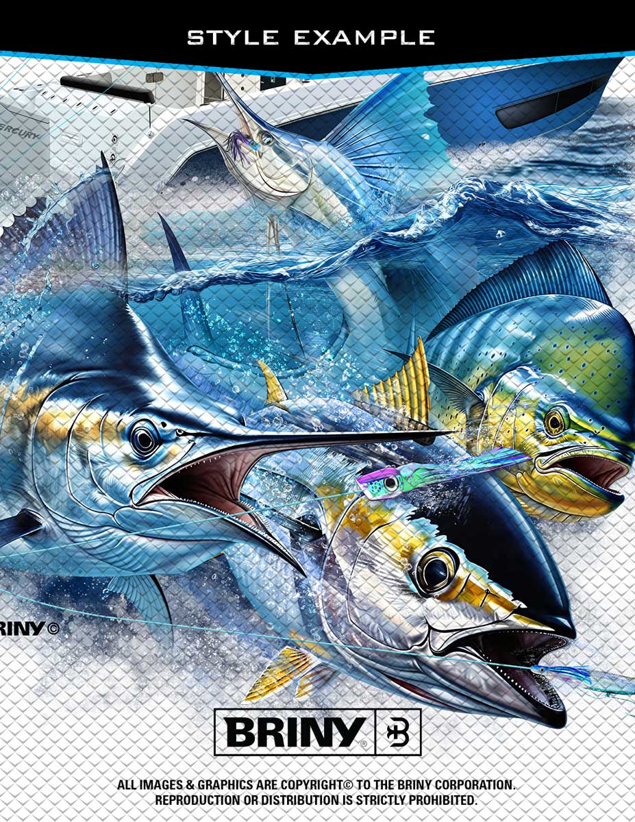 *Additional revisions billed at the hourly rate of $85. Additional objects like additional fish etc can be commissioned at hourly rate. By purchasing this custom boat graphics art service the client agrees to terms and conditions of briny.com